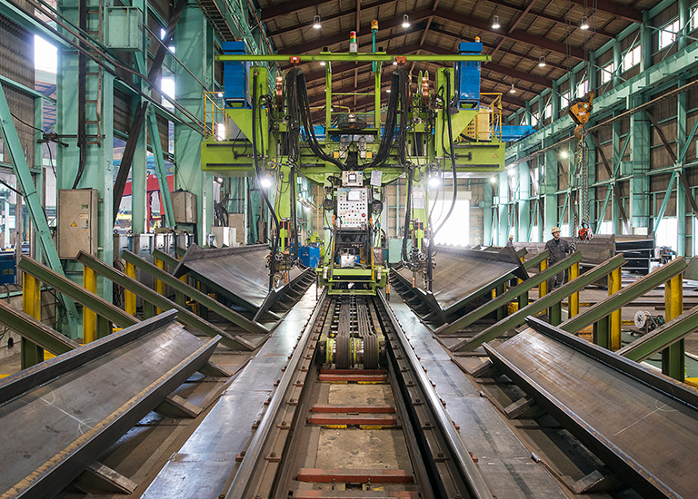 形鋼の大型化に伴い増大しがちな加工工数。大型形鋼の加工ラインにより加工賃の削減をご提案します。