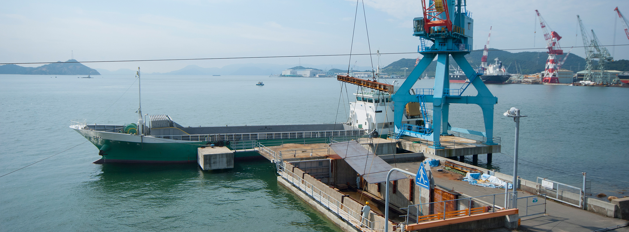 鋼板の陸送制限を回避するため、当社では2013年に専用岸壁を保有する玉野工場を開設しました。